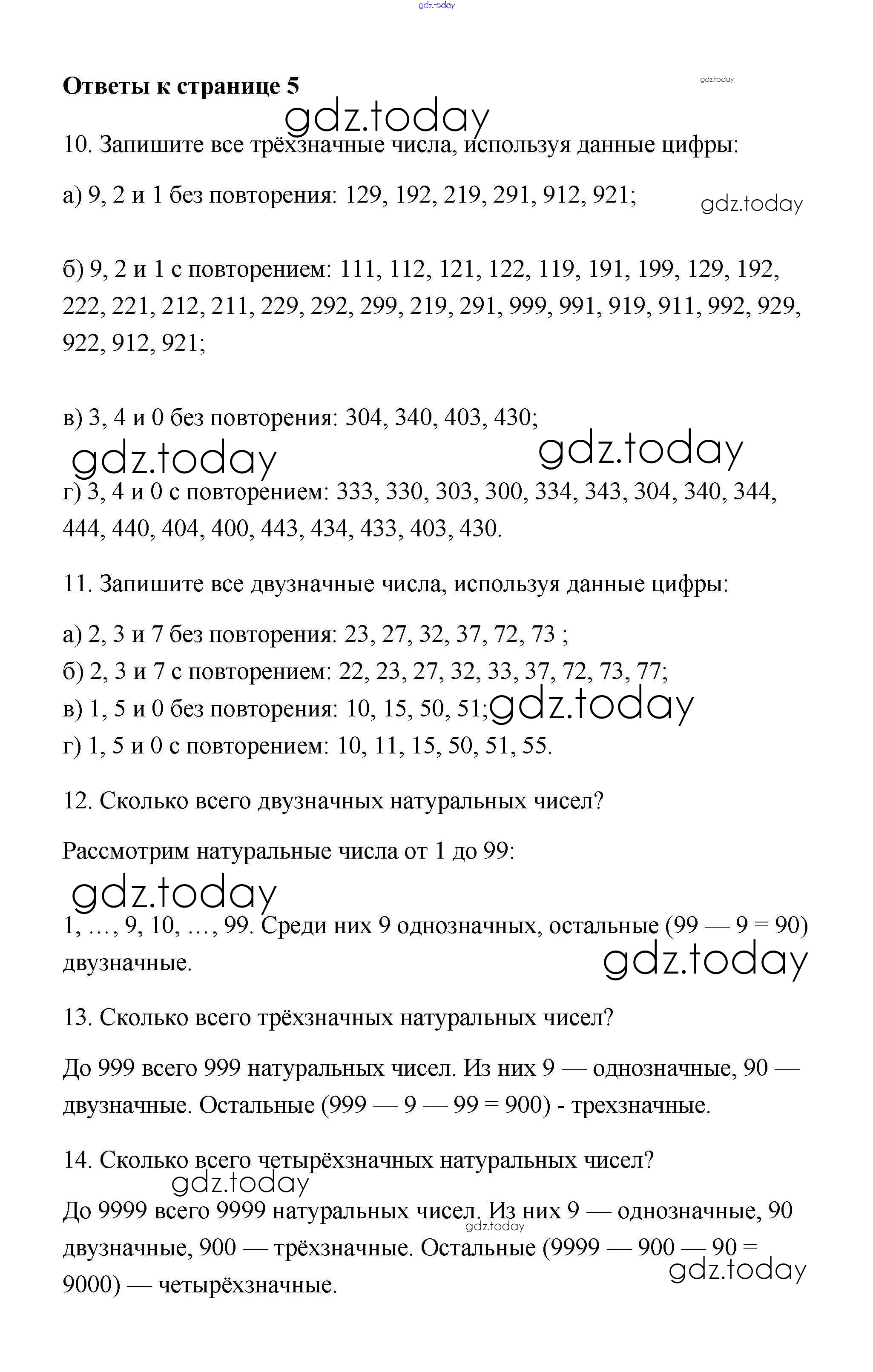 Ответы к Решение к части 1. Страницы 5 Рабочей тетради по Математике для 5 класса Потапов, Шевкин Просвещение 2019