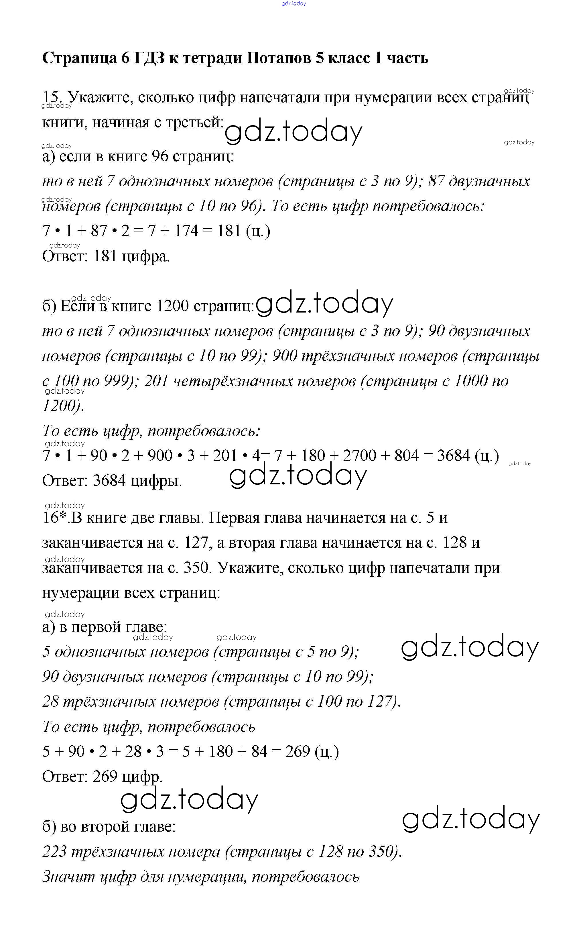 Ответы к Решение к части 1. Страницы 6 Рабочей тетради по Математике для 5 класса Потапов, Шевкин Просвещение 2019