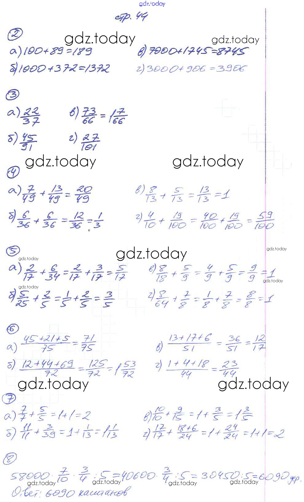 На страницах сайта gdz.today вы найдете учебный и вспомогательный материал, направленный на улучшения знаний школьной программы. ГДЗ - онлайн мир знаний Решение к части 2. Страницы 44 Рабочей тетради по Математике для 5 класса Ерина Экзамен УМК 2018
