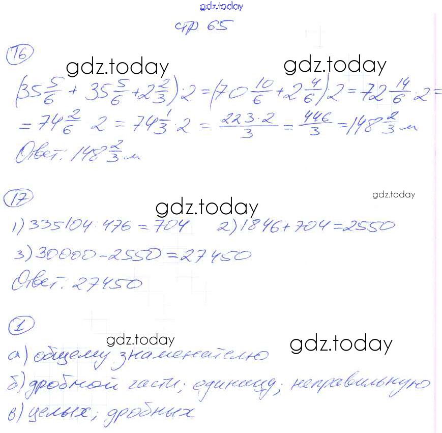 На страницах сайта gdz.today вы найдете учебный и вспомогательный материал, направленный на улучшения знаний школьной программы. ГДЗ - онлайн мир знаний Решение к части 2. Страницы 65 Рабочей тетради по Математике для 5 класса Ерина Экзамен УМК 2018