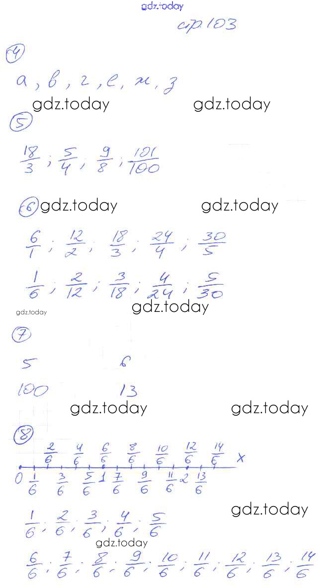 На страницах сайта gdz.today вы найдете учебный и вспомогательный материал, направленный на улучшения знаний школьной программы. ГДЗ - онлайн мир знаний Решение к части 1. Страницы 103 Рабочей тетради по Математике для 5 класса Ерина Экзамен УМК 2013