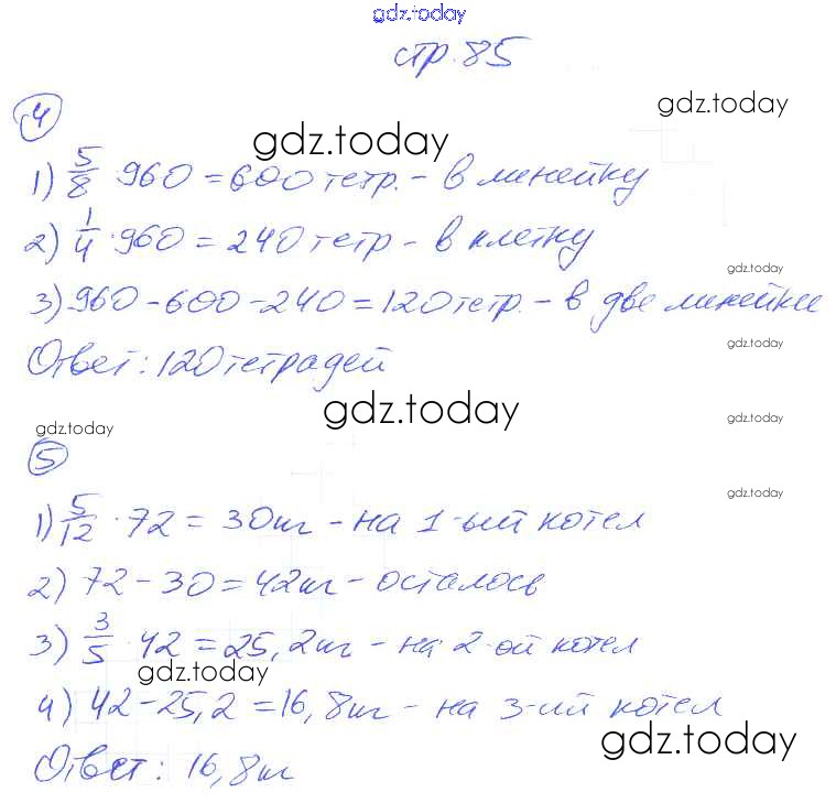 Ответы к Решение к части 1. Страницы 85 Рабочей тетради по Математике для 5 класса Ерина Экзамен УМК 2013