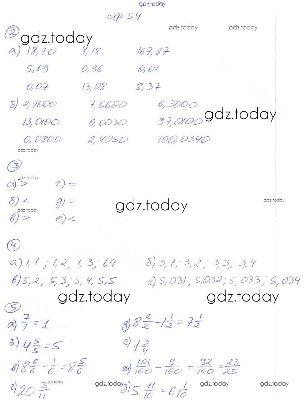 На страницах сайта gdz.today вы найдете учебный и вспомогательный материал, направленный на улучшения знаний школьной программы. ГДЗ - онлайн мир знаний Решение к части 2. Страницы 54 Рабочей тетради по Математике для 5 класса Ерина Экзамен УМК 2013