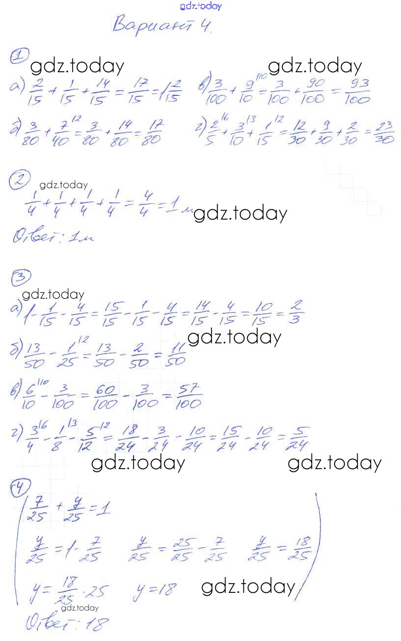 Ответы к СР-23. Варианты Решение к самостоятельным работам 4 Дидактическим материалам по Математике для 5 класса Рудницкая Экзамен УМК 2017