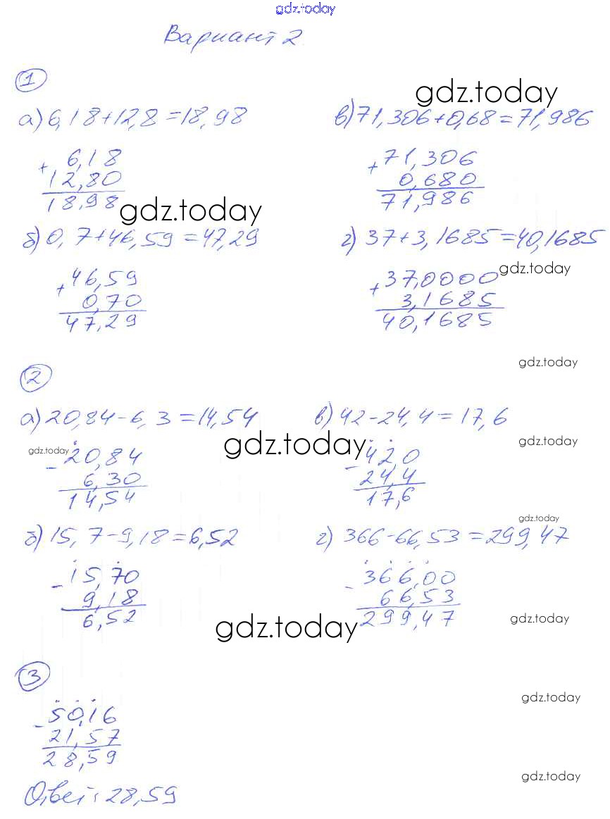 Ответы к СР-39. Варианты Решение к самостоятельным работам 2 Дидактическим материалам по Математике для 5 класса Рудницкая Экзамен УМК 2017