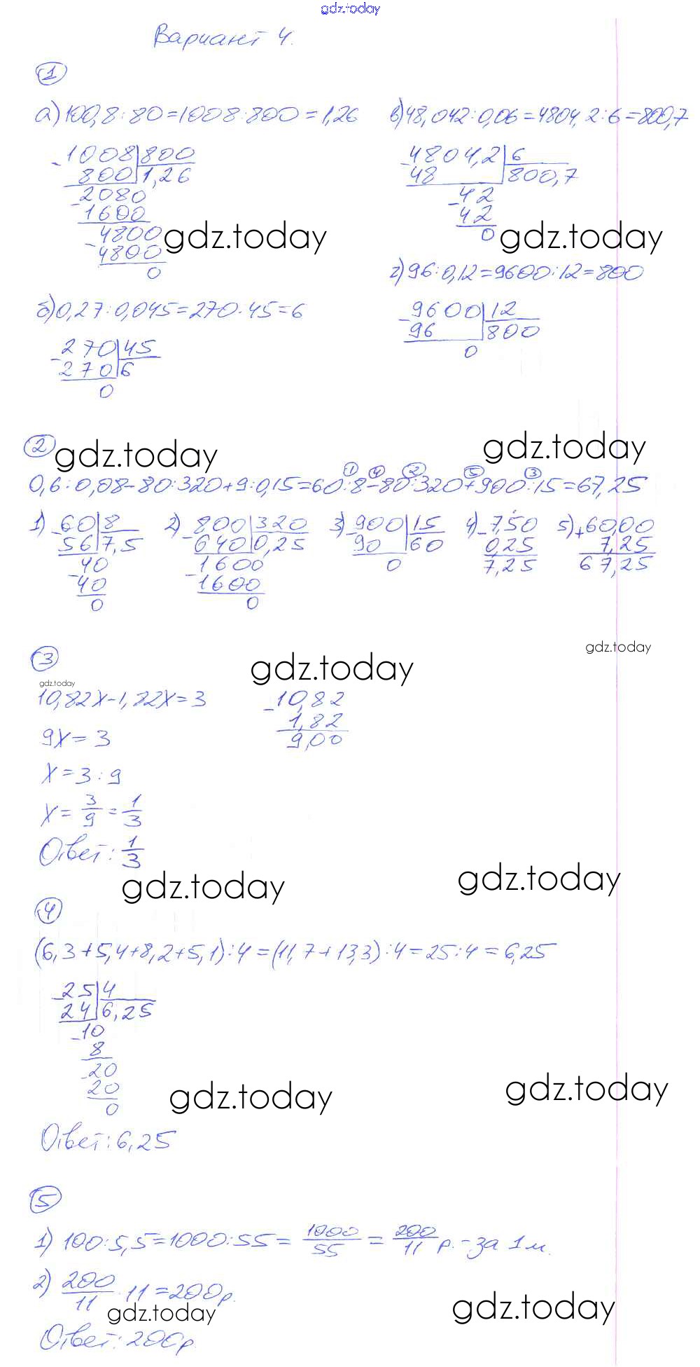 Ответы к КР-14. Варианты Решение к контрольным работам 4 Дидактическим материалам по Математике для 5 класса Рудницкая Экзамен УМК 2017