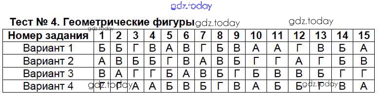 Ответы к Решение к тестам Тест №4. Геометрические фигуры Тестам по Математике для 5-6 класса Тульчинская Мнемозина УМК 2015