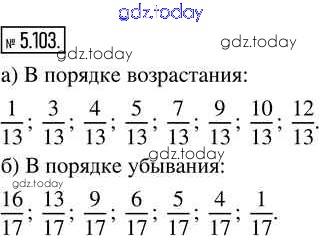 На страницах сайта gdz.today вы найдете учебный и вспомогательный материал, направленный на улучшения знаний школьной программы. ГДЗ - онлайн мир знаний Глава 5. Обыкновенные дроби Часть 2 (решение) 5.103 Учебнику по Математике для 5 класса Виленкин, Жохов Просвещение 2021