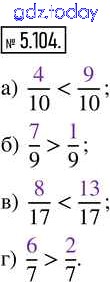 На страницах сайта gdz.today вы найдете учебный и вспомогательный материал, направленный на улучшения знаний школьной программы. ГДЗ - онлайн мир знаний Глава 5. Обыкновенные дроби Часть 2 (решение) 5.104 Учебнику по Математике для 5 класса Виленкин, Жохов Просвещение 2021