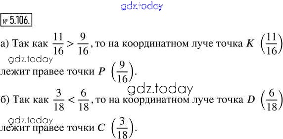На страницах сайта gdz.today вы найдете учебный и вспомогательный материал, направленный на улучшения знаний школьной программы. ГДЗ - онлайн мир знаний Глава 5. Обыкновенные дроби Часть 2 (решение) 5.106 Учебнику по Математике для 5 класса Виленкин, Жохов Просвещение 2021