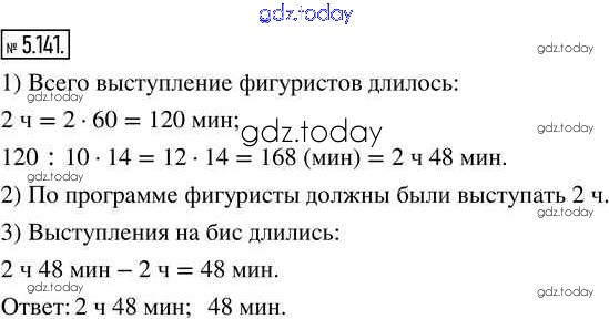 Ответы к Глава 5. Обыкновенные дроби Часть 2 (решение) 5.141 Учебнику по Математике для 5 класса Виленкин, Жохов Просвещение 2021