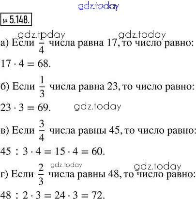 Ответы к Глава 5. Обыкновенные дроби Часть 2 (решение) 5.148 Учебнику по Математике для 5 класса Виленкин, Жохов Просвещение 2021