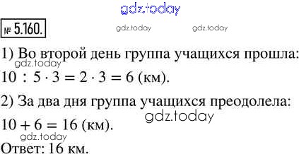 На страницах сайта gdz.today вы найдете учебный и вспомогательный материал, направленный на улучшения знаний школьной программы. ГДЗ - онлайн мир знаний Глава 5. Обыкновенные дроби Часть 2 (решение) 5.160 Учебнику по Математике для 5 класса Виленкин, Жохов Просвещение 2021