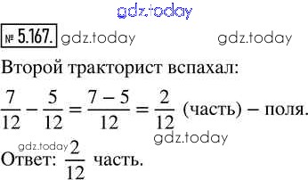 Ответы к Глава 5. Обыкновенные дроби Часть 2 (решение) 5.167 Учебнику по Математике для 5 класса Виленкин, Жохов Просвещение 2021