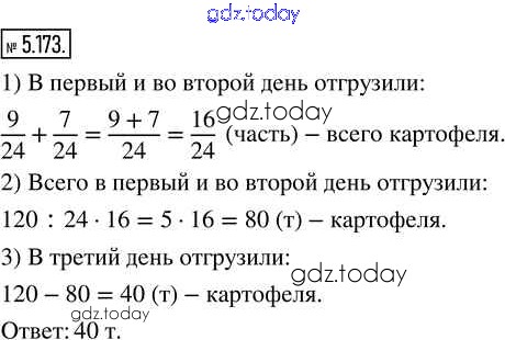 Ответы к Глава 5. Обыкновенные дроби Часть 2 (решение) 5.173 Учебнику по Математике для 5 класса Виленкин, Жохов Просвещение 2021