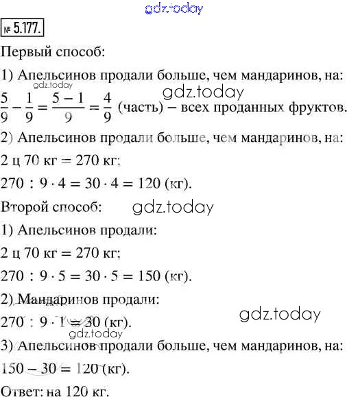 Ответы к Глава 5. Обыкновенные дроби Часть 2 (решение) 5.177 Учебнику по Математике для 5 класса Виленкин, Жохов Просвещение 2021