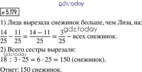 Ответы к Глава 5. Обыкновенные дроби Часть 2 (решение) 5.179 Учебнику по Математике для 5 класса Виленкин, Жохов Просвещение 2021