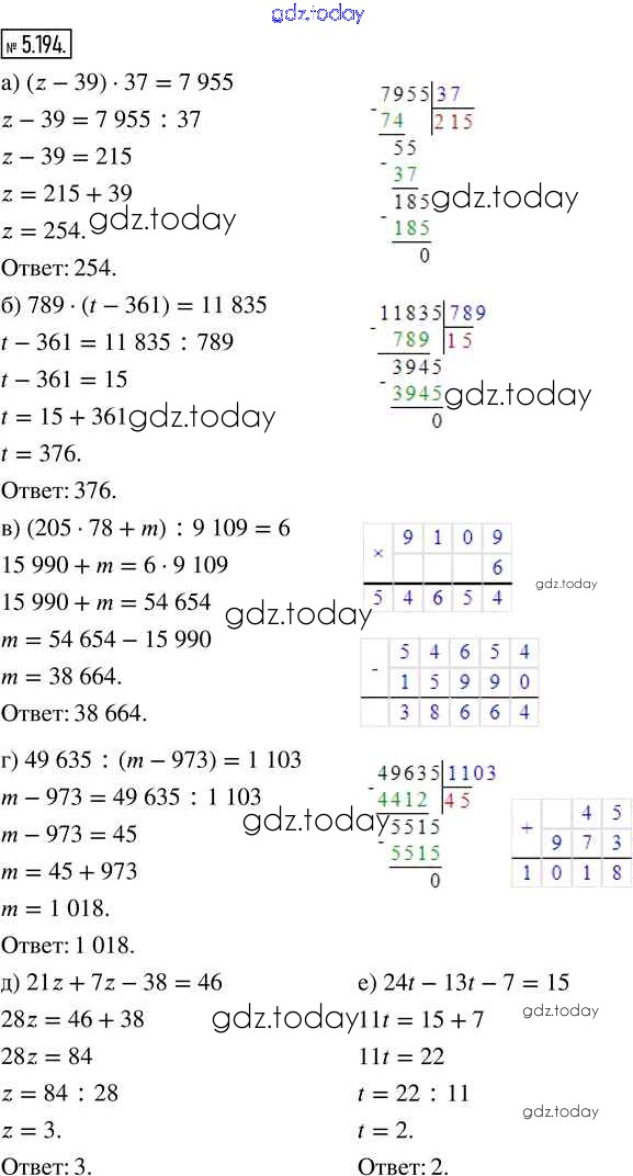 На страницах сайта gdz.today вы найдете учебный и вспомогательный материал, направленный на улучшения знаний школьной программы. ГДЗ - онлайн мир знаний Глава 5. Обыкновенные дроби Часть 2 (решение) 5.194 Учебнику по Математике для 5 класса Виленкин, Жохов Просвещение 2021