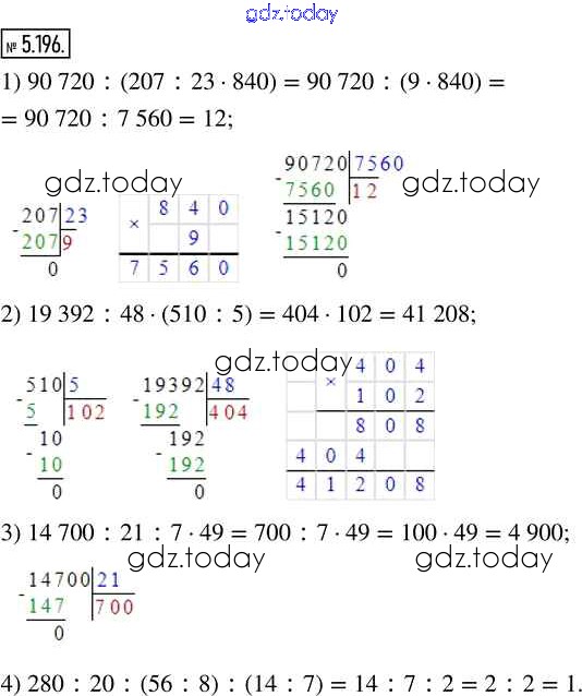 Ответы к Глава 5. Обыкновенные дроби Часть 2 (решение) 5.196 Учебнику по Математике для 5 класса Виленкин, Жохов Просвещение 2021