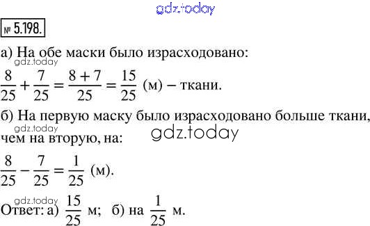 Ответы к Глава 5. Обыкновенные дроби Часть 2 (решение) 5.198 Учебнику по Математике для 5 класса Виленкин, Жохов Просвещение 2021