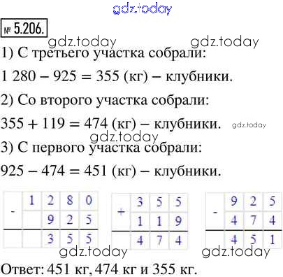 На страницах сайта gdz.today вы найдете учебный и вспомогательный материал, направленный на улучшения знаний школьной программы. ГДЗ - онлайн мир знаний Глава 5. Обыкновенные дроби Часть 2 (решение) 5.206 Учебнику по Математике для 5 класса Виленкин, Жохов Просвещение 2021