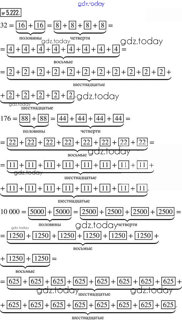 На страницах сайта gdz.today вы найдете учебный и вспомогательный материал, направленный на улучшения знаний школьной программы. ГДЗ - онлайн мир знаний Глава 5. Обыкновенные дроби Часть 2 (решение) 5.222 Учебнику по Математике для 5 класса Виленкин, Жохов Просвещение 2021