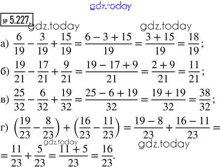 Ответы к Глава 5. Обыкновенные дроби Часть 2 (решение) 5.227 Учебнику по Математике для 5 класса Виленкин, Жохов Просвещение 2021