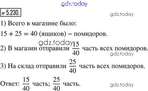 Ответы к Глава 5. Обыкновенные дроби Часть 2 (решение) 5.230 Учебнику по Математике для 5 класса Виленкин, Жохов Просвещение 2021