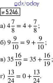 На страницах сайта gdz.today вы найдете учебный и вспомогательный материал, направленный на улучшения знаний школьной программы. ГДЗ - онлайн мир знаний Глава 5. Обыкновенные дроби Часть 2 (решение) 5.246 Учебнику по Математике для 5 класса Виленкин, Жохов Просвещение 2021
