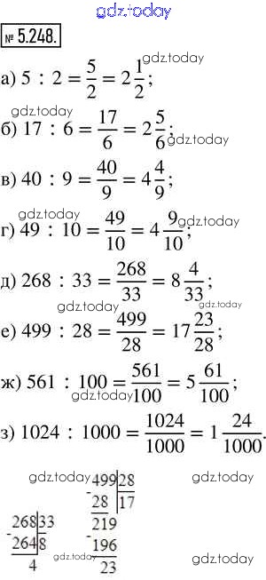 Ответы к Глава 5. Обыкновенные дроби Часть 2 (решение) 5.248 Учебнику по Математике для 5 класса Виленкин, Жохов Просвещение 2021