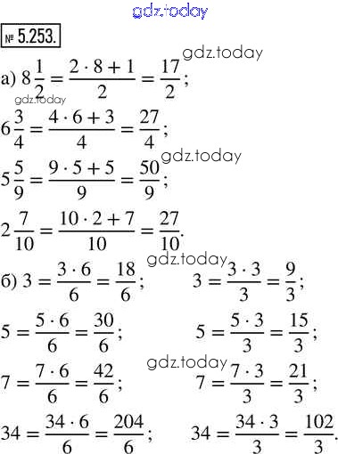На страницах сайта gdz.today вы найдете учебный и вспомогательный материал, направленный на улучшения знаний школьной программы. ГДЗ - онлайн мир знаний Глава 5. Обыкновенные дроби Часть 2 (решение) 5.253 Учебнику по Математике для 5 класса Виленкин, Жохов Просвещение 2021