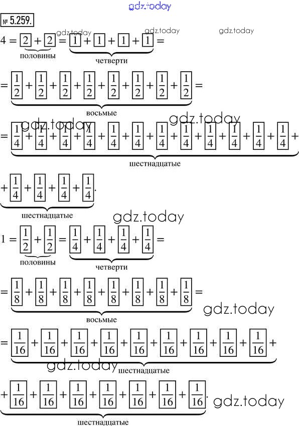 На страницах сайта gdz.today вы найдете учебный и вспомогательный материал, направленный на улучшения знаний школьной программы. ГДЗ - онлайн мир знаний Глава 5. Обыкновенные дроби Часть 2 (решение) 5.259 Учебнику по Математике для 5 класса Виленкин, Жохов Просвещение 2021
