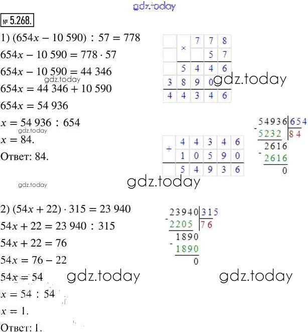 Ответы к Глава 5. Обыкновенные дроби Часть 2 (решение) 5.268 Учебнику по Математике для 5 класса Виленкин, Жохов Просвещение 2021