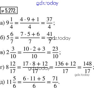 Ответы к Глава 5. Обыкновенные дроби Часть 2 (решение) 5.272 Учебнику по Математике для 5 класса Виленкин, Жохов Просвещение 2021