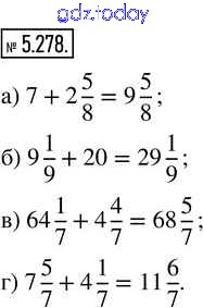 Ответы к Глава 5. Обыкновенные дроби Часть 2 (решение) 5.278 Учебнику по Математике для 5 класса Виленкин, Жохов Просвещение 2021