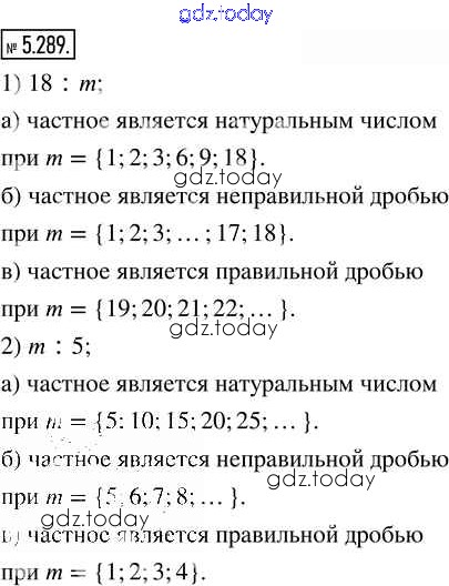 Ответы к Глава 5. Обыкновенные дроби Часть 2 (решение) 5.289 Учебнику по Математике для 5 класса Виленкин, Жохов Просвещение 2021