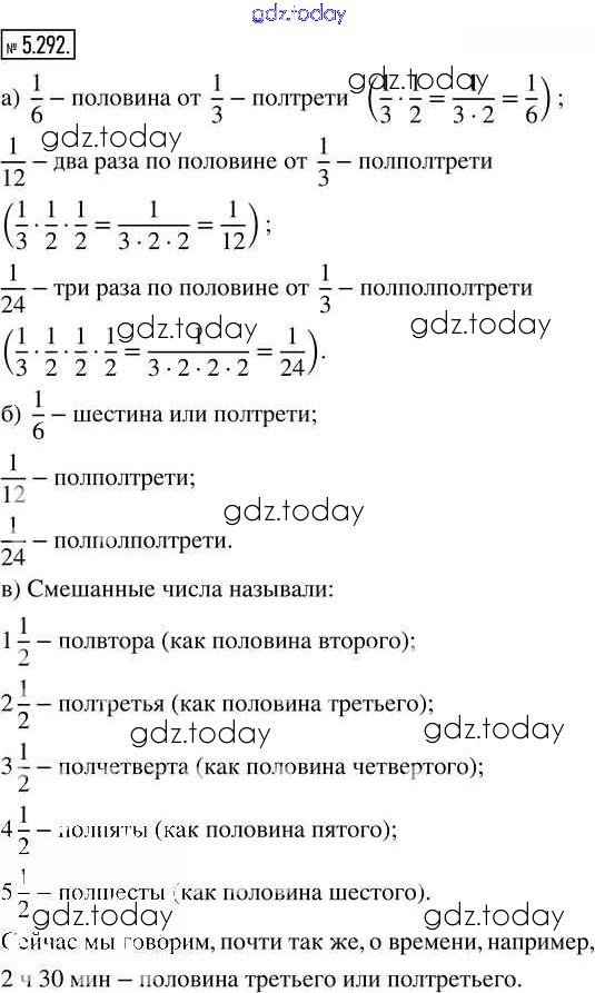 Ответы к Глава 5. Обыкновенные дроби Часть 2 (решение) 5.292 Учебнику по Математике для 5 класса Виленкин, Жохов Просвещение 2021