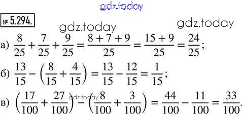 Ответы к Глава 5. Обыкновенные дроби Часть 2 (решение) 5.294 Учебнику по Математике для 5 класса Виленкин, Жохов Просвещение 2021