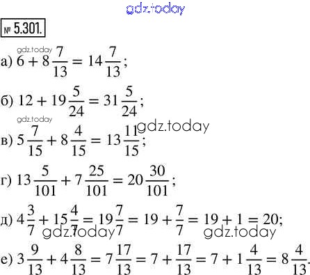 Ответы к Глава 5. Обыкновенные дроби Часть 2 (решение) 5.301 Учебнику по Математике для 5 класса Виленкин, Жохов Просвещение 2021