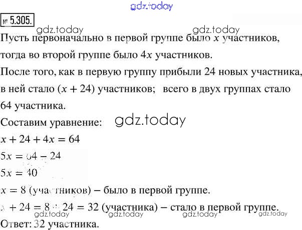 Ответы к Глава 5. Обыкновенные дроби Часть 2 (решение) 5.305 Учебнику по Математике для 5 класса Виленкин, Жохов Просвещение 2021