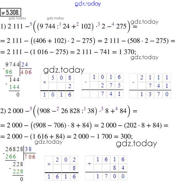 Ответы к Глава 5. Обыкновенные дроби Часть 2 (решение) 5.308 Учебнику по Математике для 5 класса Виленкин, Жохов Просвещение 2021