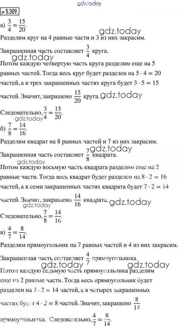 На страницах сайта gdz.today вы найдете учебный и вспомогательный материал, направленный на улучшения знаний школьной программы. ГДЗ - онлайн мир знаний Глава 5. Обыкновенные дроби Часть 2 (решение) 5.309 Учебнику по Математике для 5 класса Виленкин, Жохов Просвещение 2021