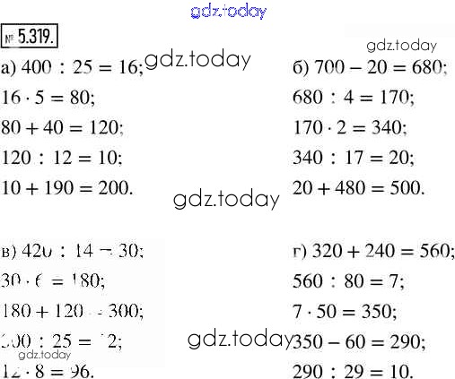 Ответы к Глава 5. Обыкновенные дроби Часть 2 (решение) 5.319 Учебнику по Математике для 5 класса Виленкин, Жохов Просвещение 2021
