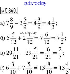 Ответы к Глава 5. Обыкновенные дроби Часть 2 (решение) 5.340 Учебнику по Математике для 5 класса Виленкин, Жохов Просвещение 2021
