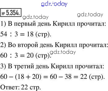 Ответы к Глава 5. Обыкновенные дроби Часть 2 (решение) 5.354 Учебнику по Математике для 5 класса Виленкин, Жохов Просвещение 2021