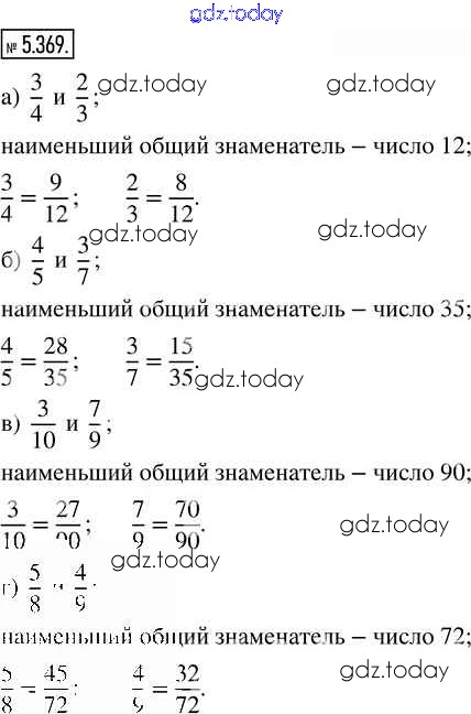 На страницах сайта gdz.today вы найдете учебный и вспомогательный материал, направленный на улучшения знаний школьной программы. ГДЗ - онлайн мир знаний Глава 5. Обыкновенные дроби Часть 2 (решение) 5.369 Учебнику по Математике для 5 класса Виленкин, Жохов Просвещение 2021