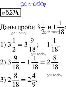 Ответы к Глава 5. Обыкновенные дроби Часть 2 (решение) 5.374 Учебнику по Математике для 5 класса Виленкин, Жохов Просвещение 2021