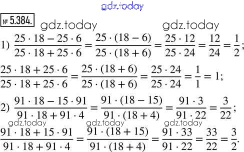 Ответы к Глава 5. Обыкновенные дроби Часть 2 (решение) 5.384 Учебнику по Математике для 5 класса Виленкин, Жохов Просвещение 2021
