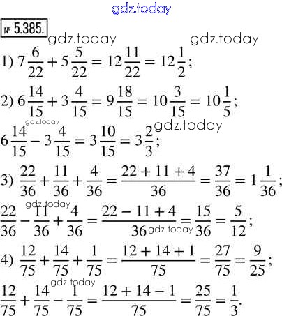 Ответы к Глава 5. Обыкновенные дроби Часть 2 (решение) 5.385 Учебнику по Математике для 5 класса Виленкин, Жохов Просвещение 2021
