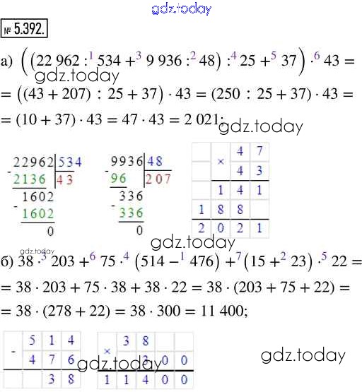 Ответы к Глава 5. Обыкновенные дроби Часть 2 (решение) 5.392 Учебнику по Математике для 5 класса Виленкин, Жохов Просвещение 2021